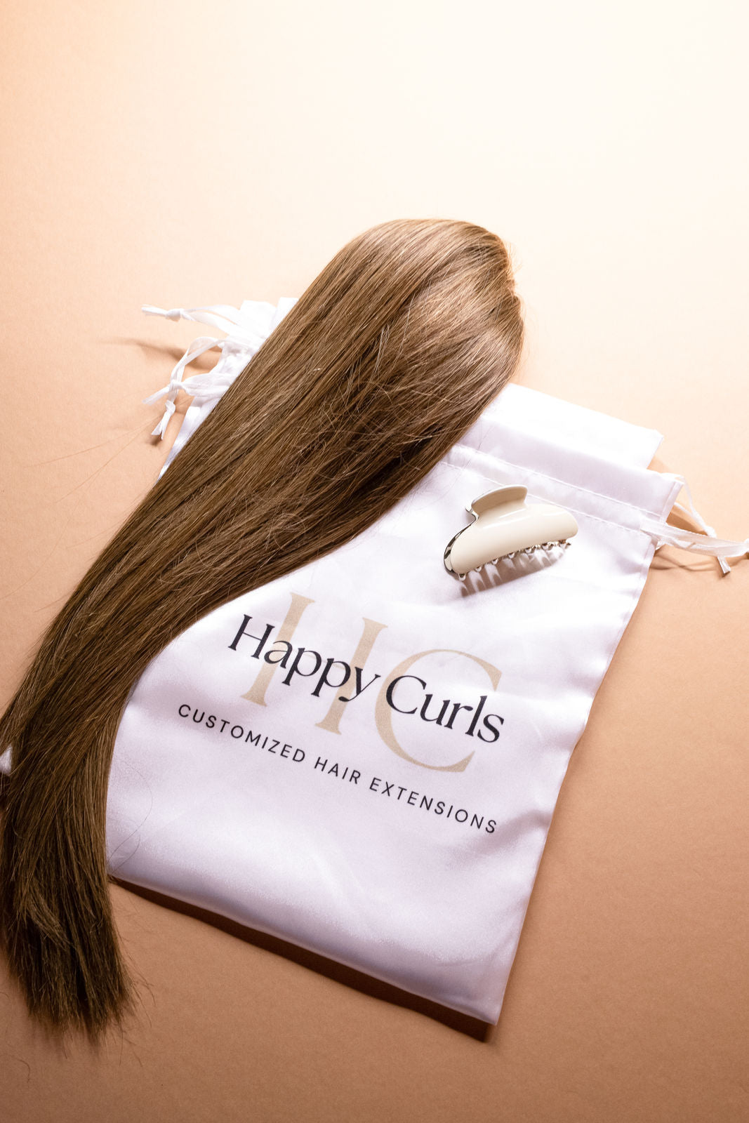 Ein Tipp von uns für gesundes, glückliches Haar: Wähle keine Verlängerungen, die deutlich länger als dein eigenes Haar sind. So bleiben deine eigenen Strähnen geschont, und deine HappyCurls sehen natürlich, voll und wunderschön aus.