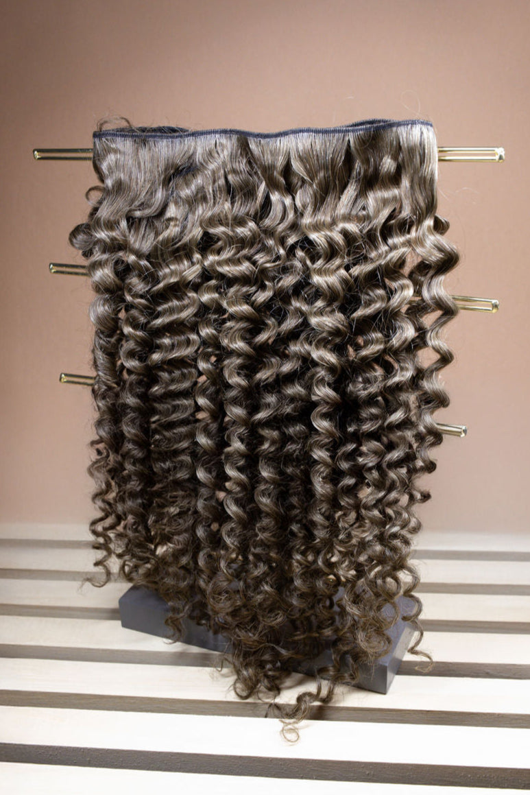 Zuerst solltest du deinen Haartyp und die Struktur deiner Locken analysieren. Bei manchen Lockentypen bietet es sich an zwei verschiedene Strukturen zu wählen. Nachdem du die perfekte Farbe gefunden hast, ist der nächste Schritt die Wahl der richtigen Haarstruktur. Wavey, oder curly – finde die Textur, die am besten zu deinem natürlichen Haar oder deinem gewünschten Look passt. Unsere Haarverlängerungen fügen sich nahtlos in dein Haar ein und lassen sich je nach Wunsch stylen. Auch hier sind zwei verschiedene Strukturen möglich, wähle einfach im Bestellprozess Struktur A und Struktur B aus. Je nachdem wie dick und dicht Deine Haare sind, empfiehlt es sich ein Set mit einer höheren Grammzahl zu wählen. Wenn Du Dir noch nicht sicher bist, welche Struktur Du benötigst: Bestelle Dir den Strukturring bequem nach Hause. Deine Haarstruktur, dein Style – entscheide dich jetzt!
