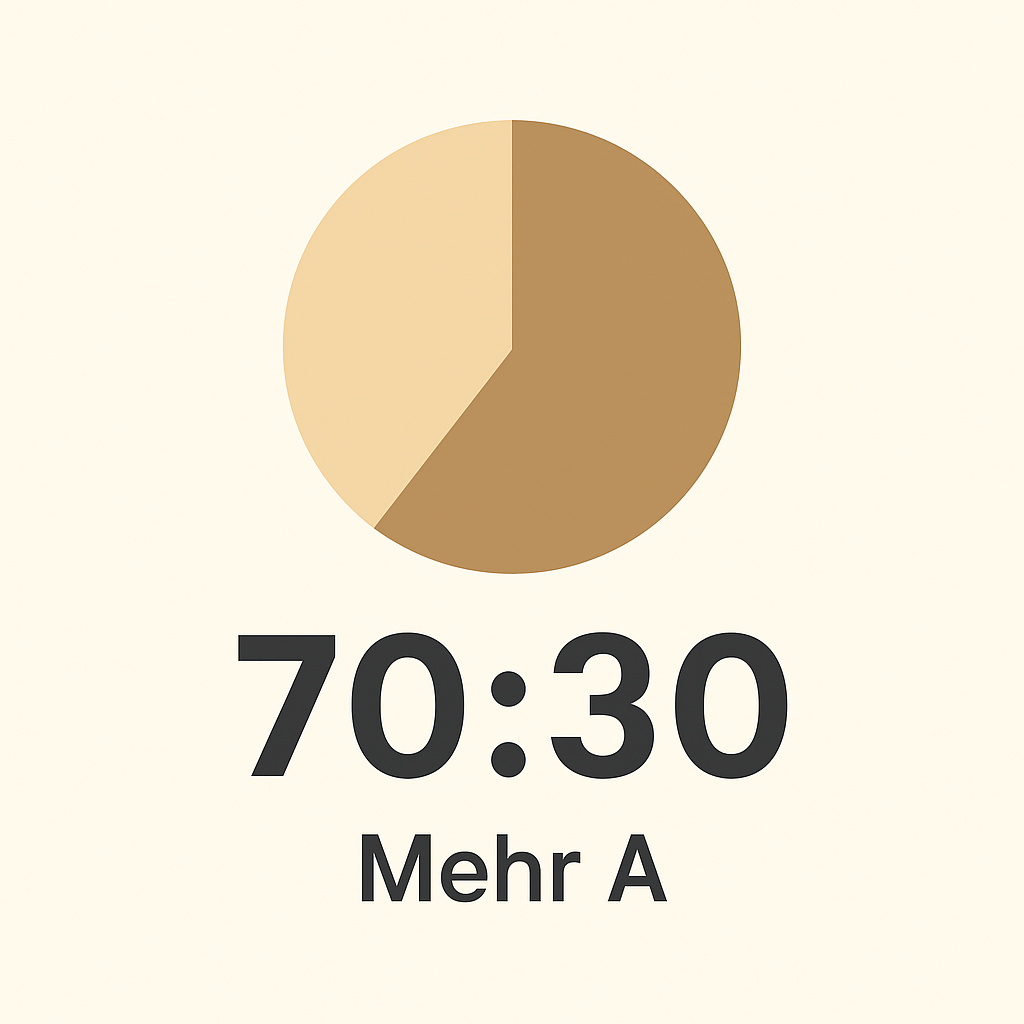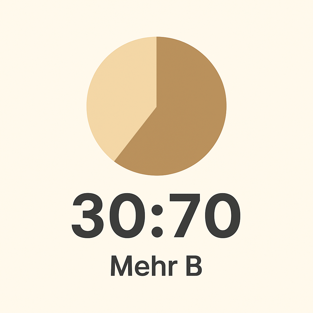 Für alle, die gern mutige Akzente setzen: Hier wird Struktur & Farbe B mit 70 % in den Vordergrund gestellt, während 30 % von Struktur & Farbe A für einen harmonischen Ausgleich sorgen. Perfekt für spannende Kontraste und Tiefe im Haar.